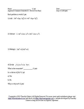 Read Online algebra 2 semester 2 summers school Doc